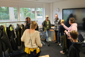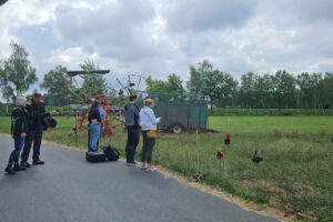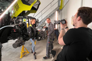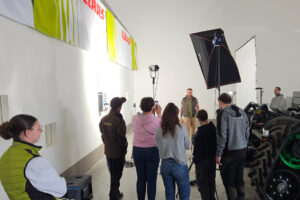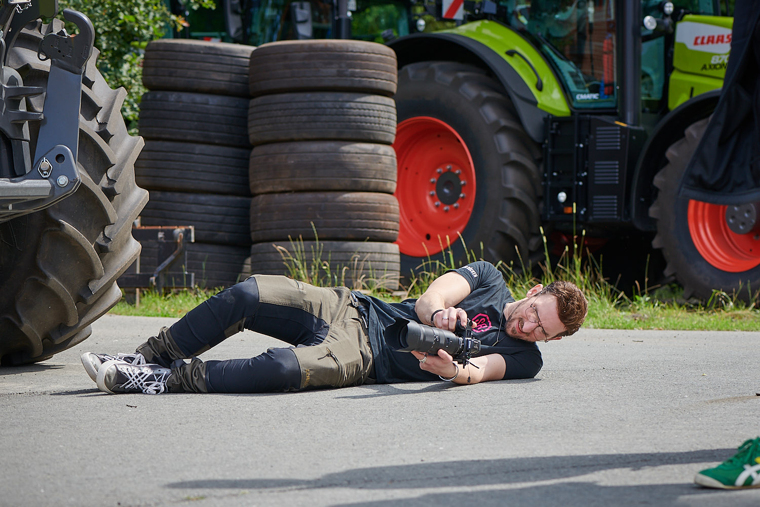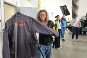 Vor Ort angekommen haben wir direkt losgelegt: Zusammen mit Jana und Lukas, den zwei Profi-Models, haben wir verschiedene Outfits der Claas-Collection fotografiert und auch gefilmt. Mit Traktoren im Hintergrund und in Begleitung von einem Team, das auf jedes Detail achtet, sind wir von einem Setting zum Nächsten gelaufen. Gabi und Hedi, die Stylistinnen, haben die Outfits perfekt in Szene gesetzt und das Make-up gemacht.