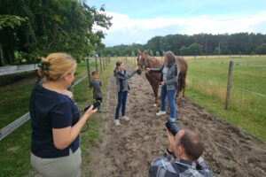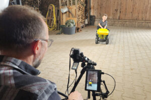 Währenddessen sind Stephan und Julian auf dem Bauernhof gestartet. Auf dem Hof mit Pferden, Laufenten und Katzen, haben wir die Kleidung und Spielzeuge für die neue Kinder-Collection geshootet.